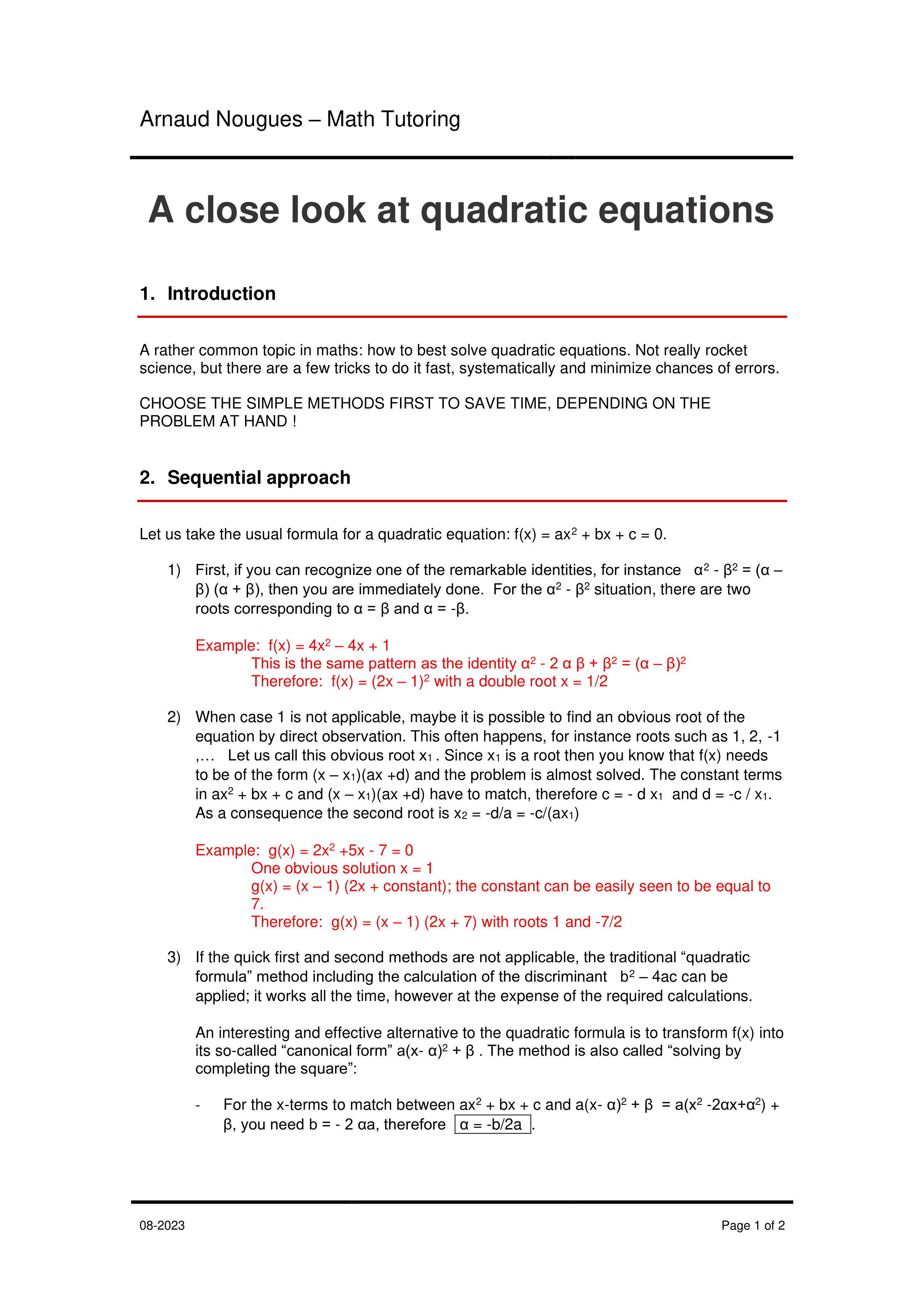 Tips and tricks about the resolution of quadratic equat...