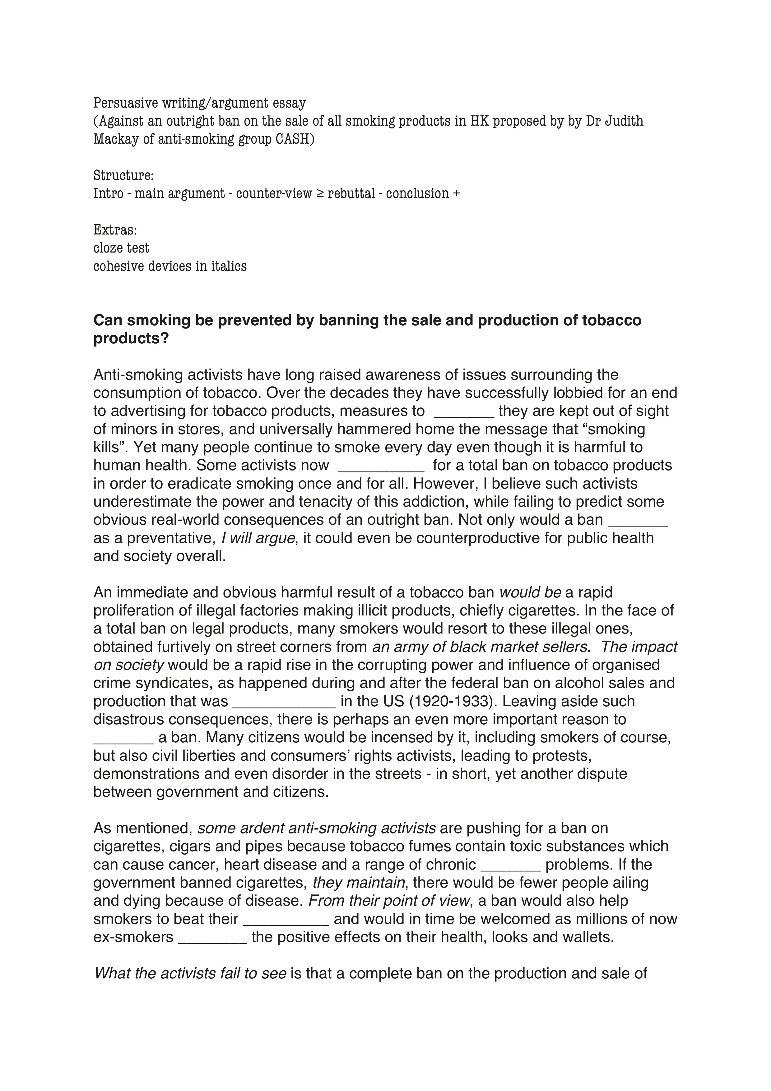 An outright ban on the sale of all smoking products in ...