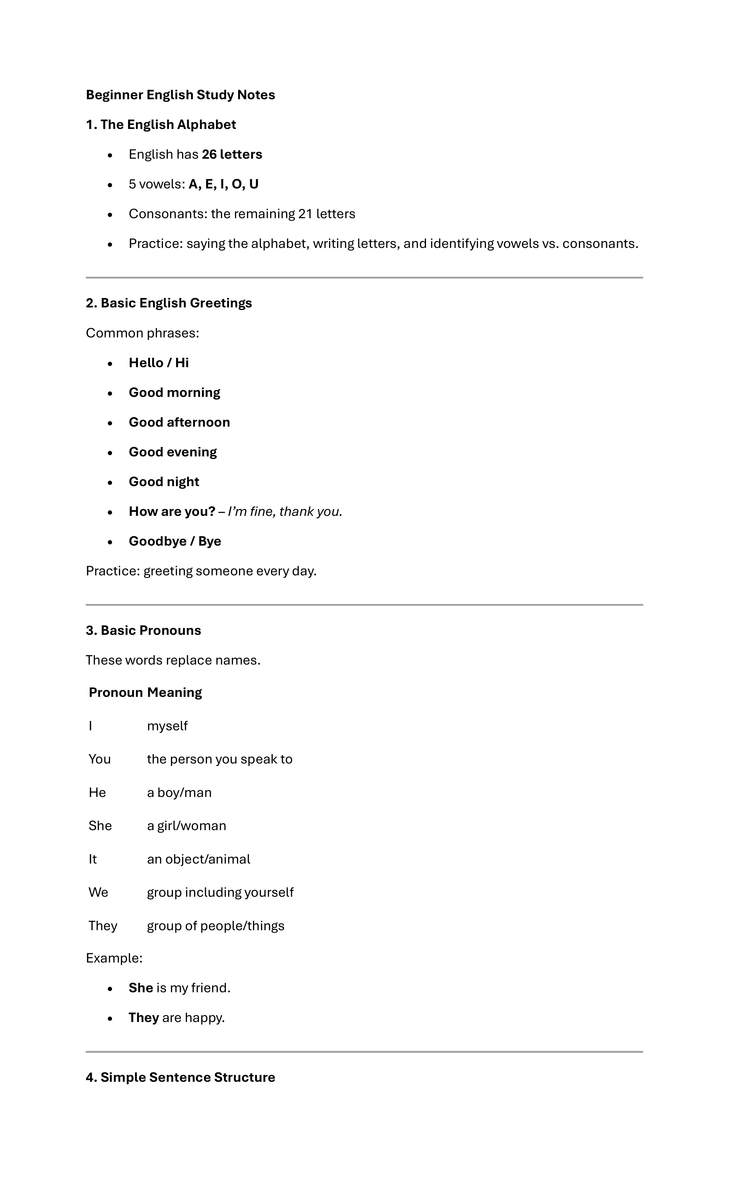 I can generate, Grammar drills (tenses, subject–verb agreement, modals, clauses, etc.) Vocabulary exercises (synonyms, word forms, context clues) Reading comprehension passages with questions. Writing prompts (essays, summaries, reflections)