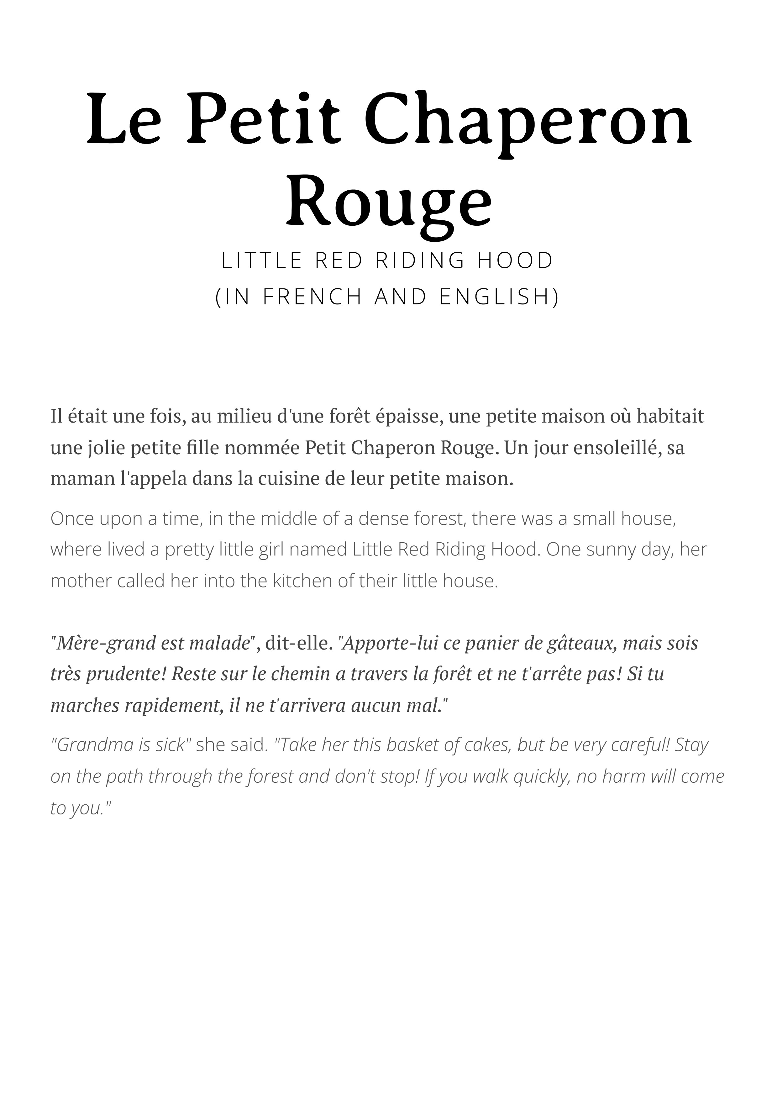 Le Petit Chaperon Rouge, or Little Red Riding Hood, is ...