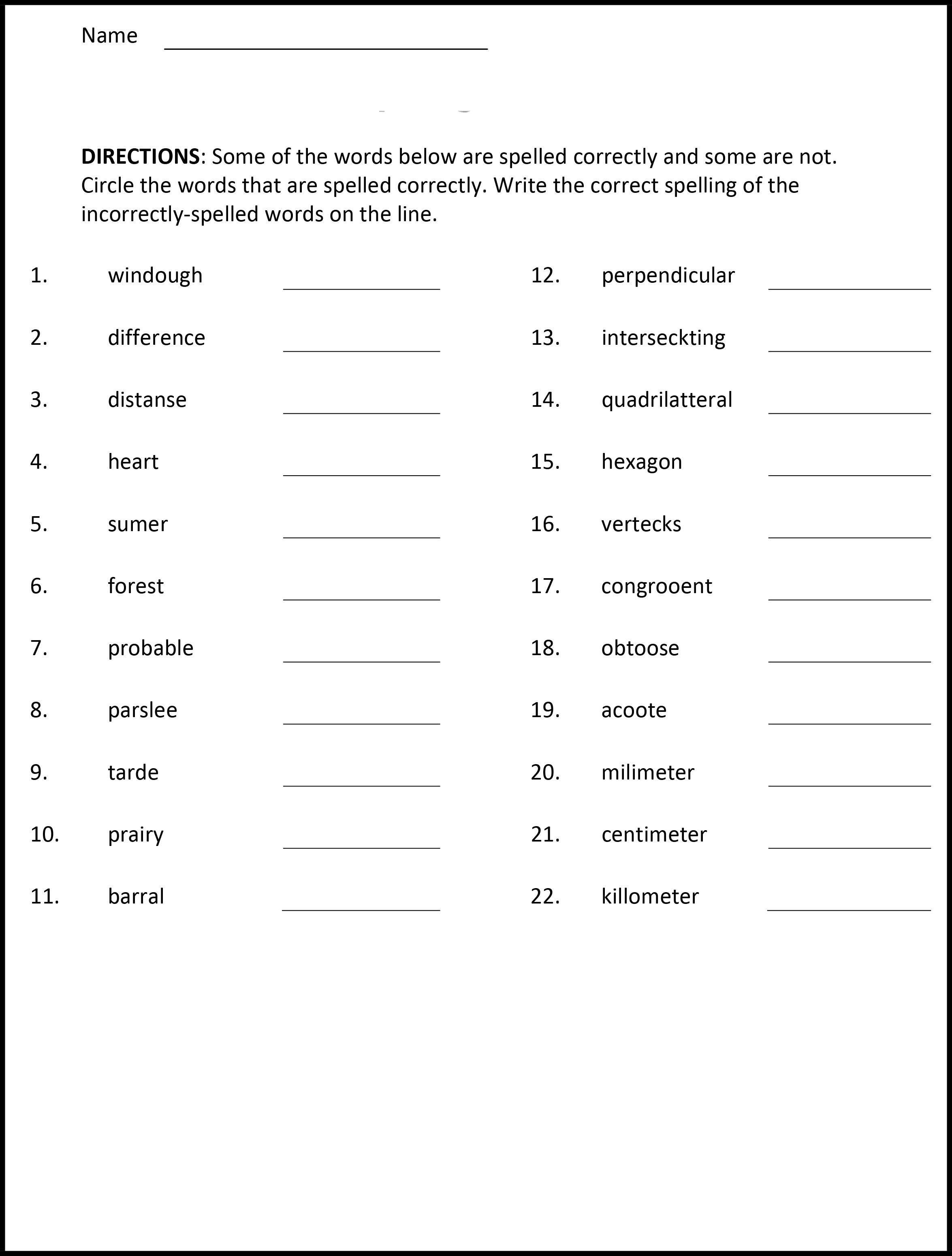 A 4th grade practice spelling test for students to get ...