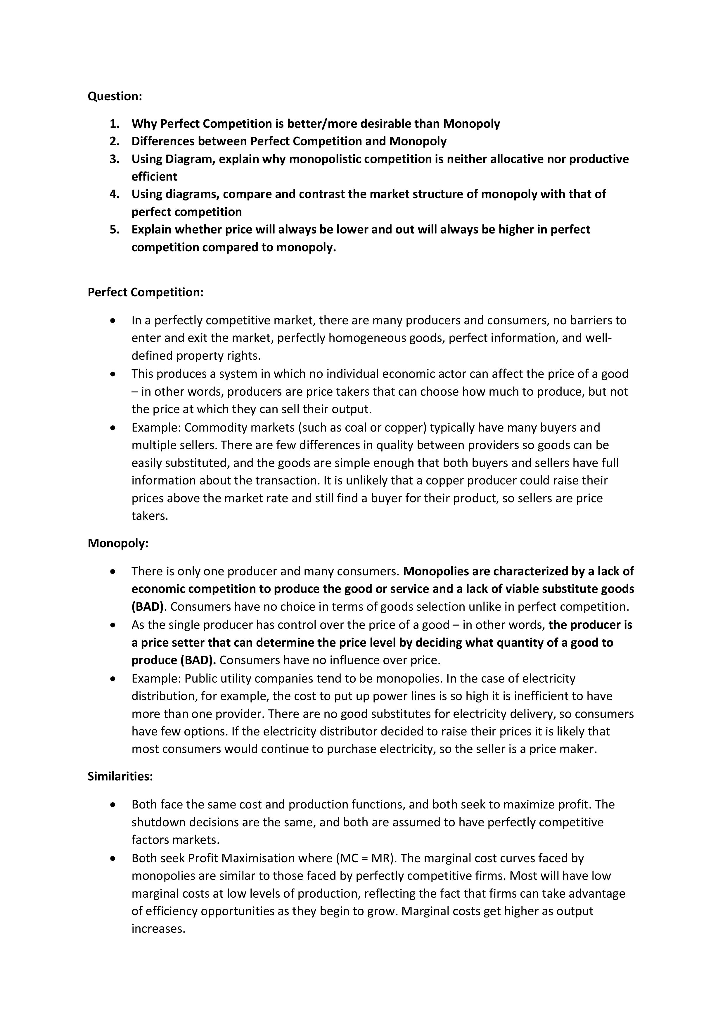 The assumptions of Perfect Competition and Monopoly are...