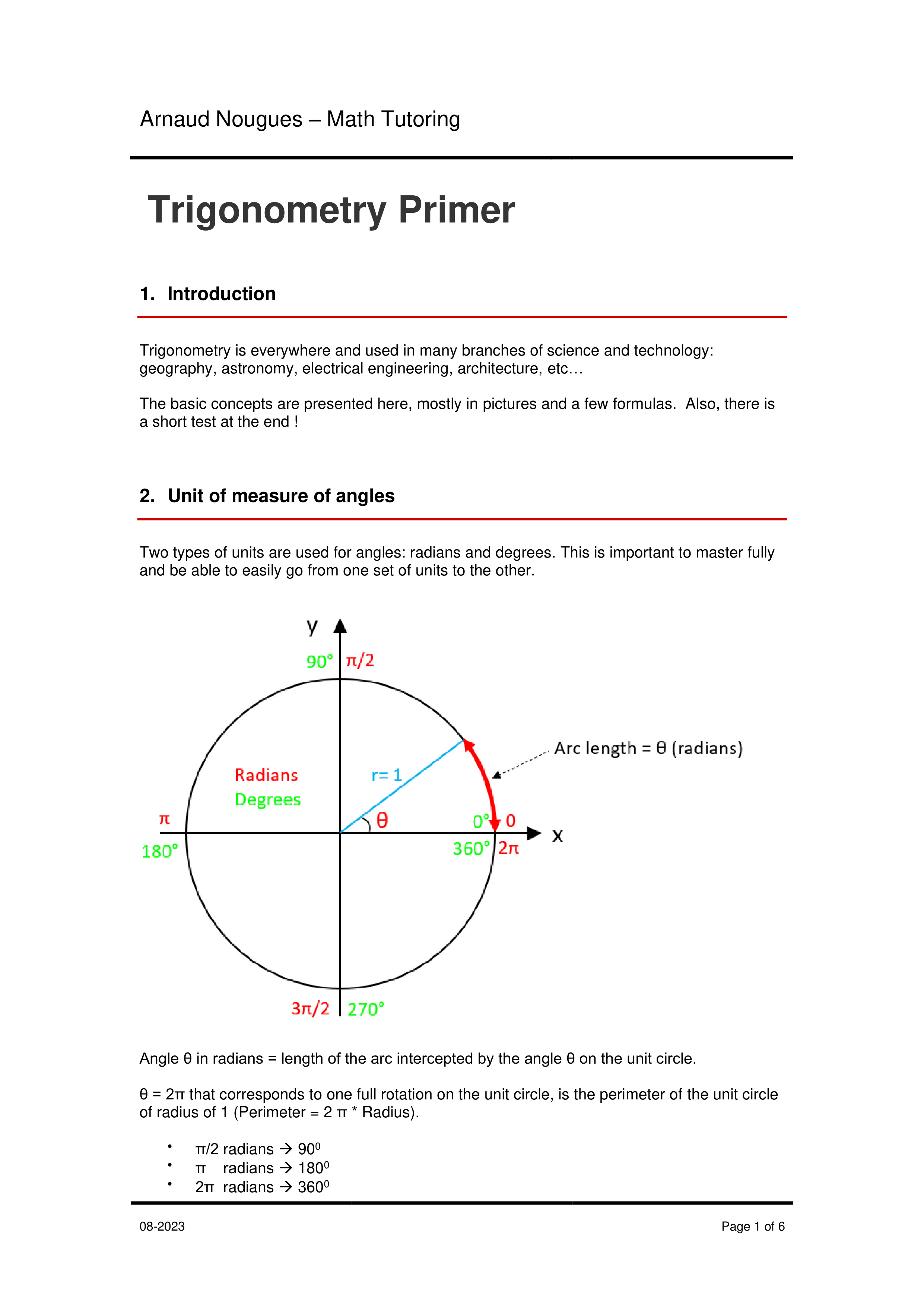 Summary of basic concepts of trigonometry including use...