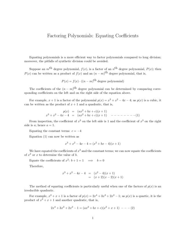 Polynomials can be factored through division (long or s...