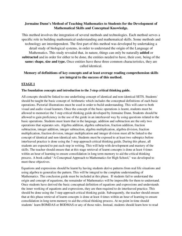 Stage 1, The foundation concepts and introduction to the 3 step critical thinking guide. Stage 2, Application of steps in critical thinking to non- familiar concepts.